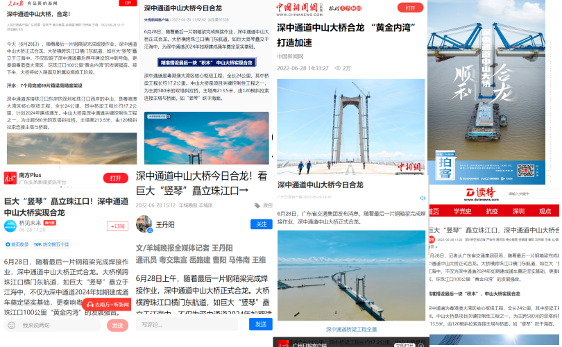 6月28日,随着最后一片钢箱梁完成焊接作业,深中通道中山大桥正式合龙。大桥横跨珠江口横门东航道,如巨大“竖琴”矗立于江海中,不仅为深中通道2024年如期建成通车奠定坚实基础,更奏响粤港澳大湾区、环珠江口100公里“黄金内湾”的发展强音。