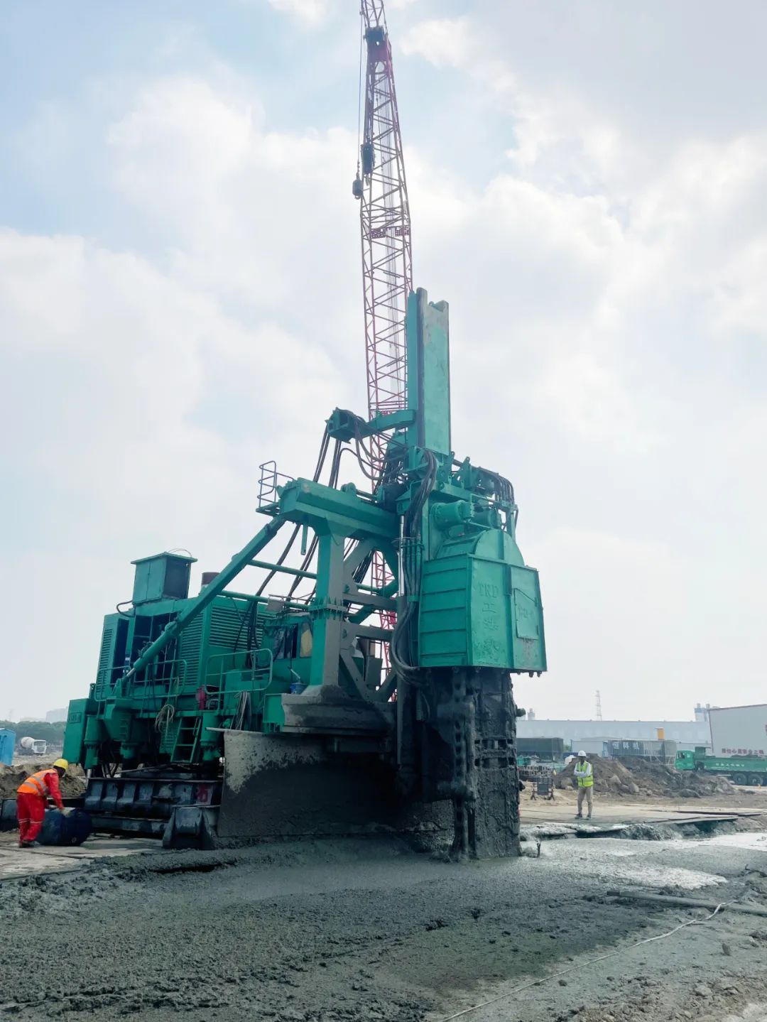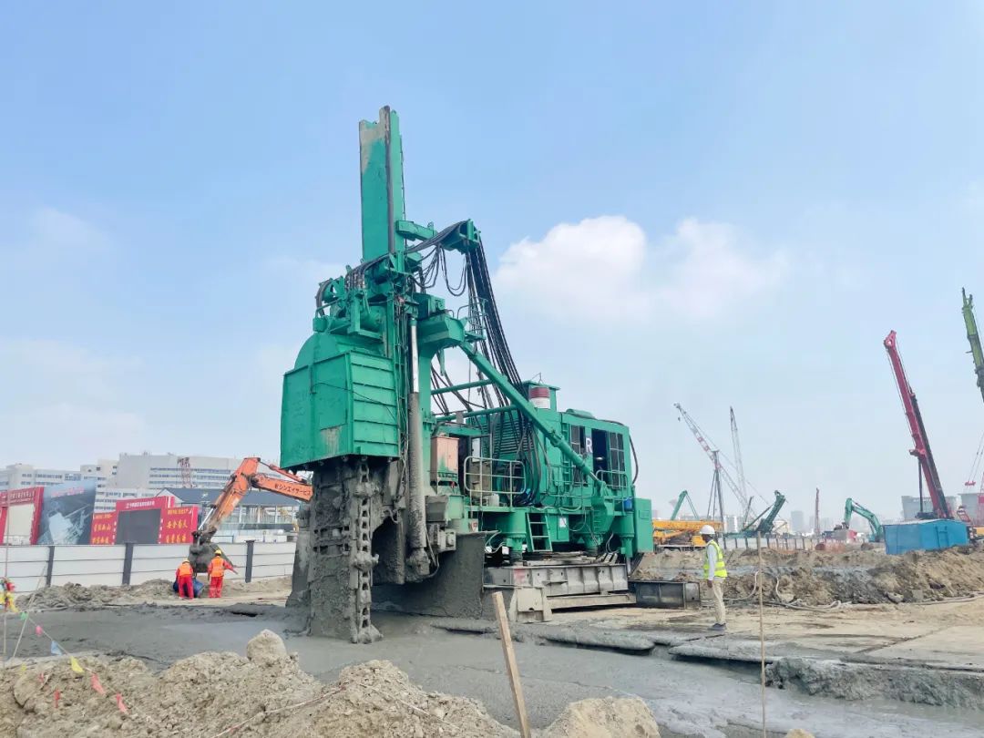 汕头高铁站枢纽一体化工程总投资34.18亿,需要改造和建设内容包括了轨道交通预留工程,集散系统匝道工程,以及面积为15万平方米的东广场。由于TRD施工方量较大,进驻了两台上工机械TRD-60D工法机进行施工作业。非常巧合的是,参与此次TRD施工的企业又是上海广大基础,而其中一台设备是10年前上海广大基础购买的上工机械研制的首台TRD产品,具有61m深度施工能力。历经十年风雨,这台编号为1号的TRD-60D设备依旧宝刀未老,动力依然十分强劲、质量也非常可靠,为上海广大企业发展立下汗马功劳。上工机械TRD产品经过十年发展,目前已经形成了TRD-C50、TRD60D/E、TRD70D/E、TRD80E系列化产品,不断刷新TRD施工深度和施工效率纪录,产品技术在业内遥遥领先。