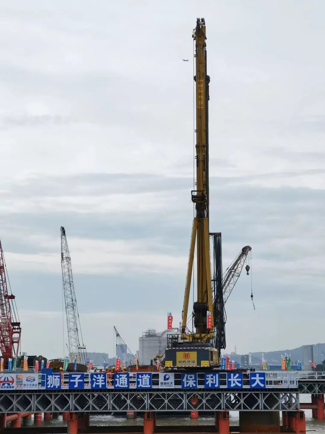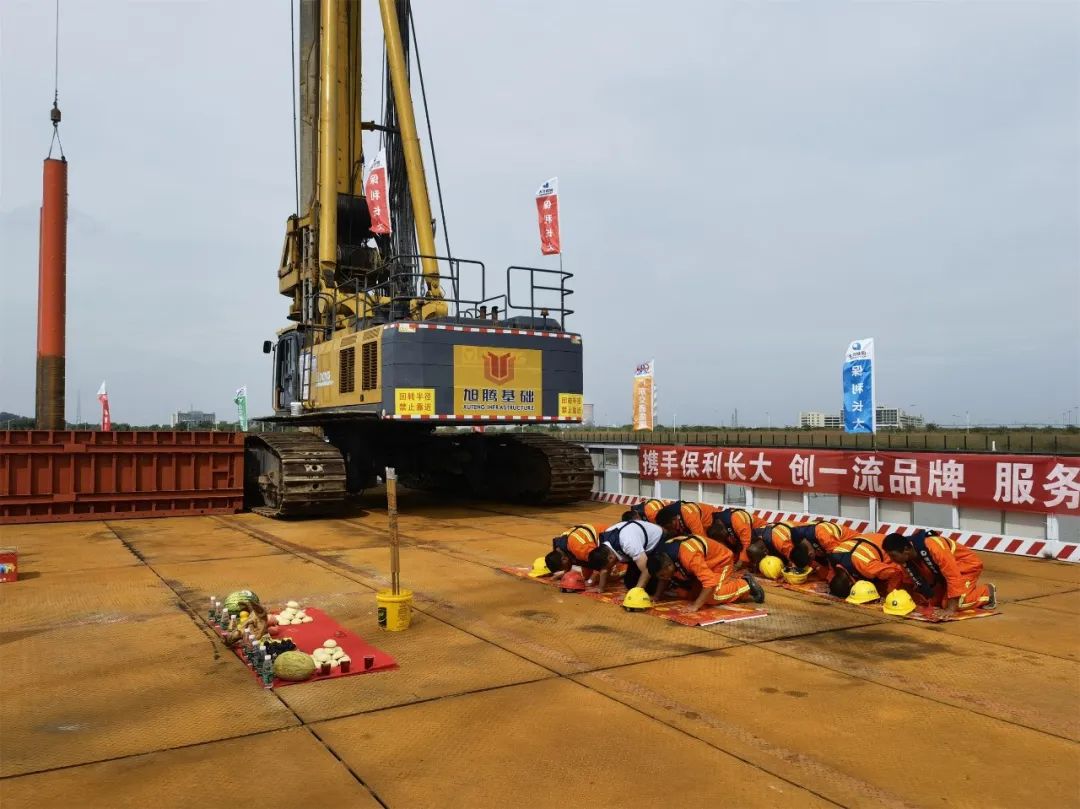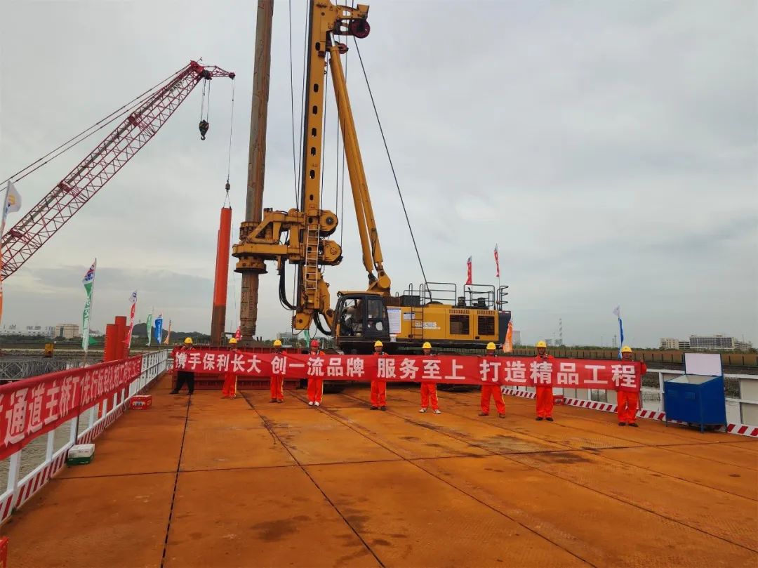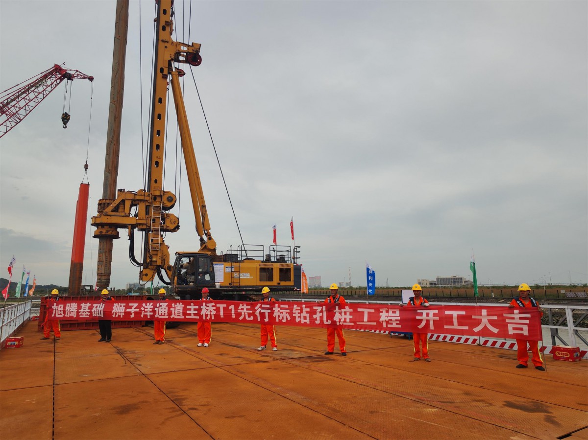 28日上午10:00时,世界最大双层悬索桥——狮子洋通道主桥试桩开工建设。在狮子洋通道主桥先行工程T1标施工现场,礼炮齐响,机械轰鸣,彩旗飘扬,业主广东交通集团、承建单位保利长大工程有限公司的相关领导、及施工单位旭腾基础公司的总经理、副总等一行共同参加了开工庆典。试验桩的开工建设为狮子洋通道主体施工拉开了序幕。