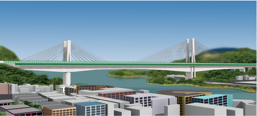 深汕铁路深圳水库特大桥主桥采用高低塔部分斜拉桥,其242米主跨一跨跨越水库,是国内高速铁路最大跨度的高低塔部分斜拉桥。工程与周围环境及相邻工程的融合度好,建成后将成为该区域内的标志性建筑。
