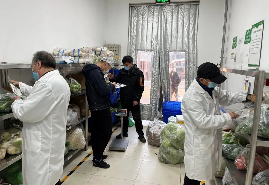△早上,后勤保障部工作人员在仔细查验食材的新鲜度,全力保障员工就餐安全。