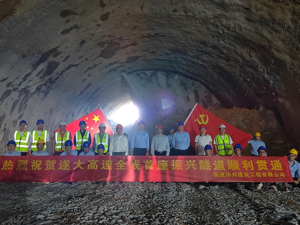 近日,遂大高速B3标振兴隧道左洞洞内洞外顺利实现贯通,成为遂大高速全线首座实现贯通的隧道。