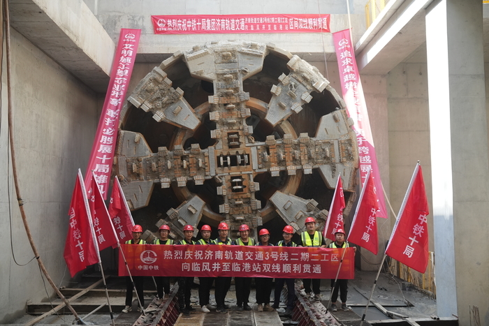 6月5日,“前进8号”盾构机破土而出,济南地铁3号线二期工程向临风井—临港站区间(以下简称“向临区间”)右线成功贯通,标志着向临区间双线贯通,向着济南地铁3号线二期工程全线贯通目标又迈进坚实一步。