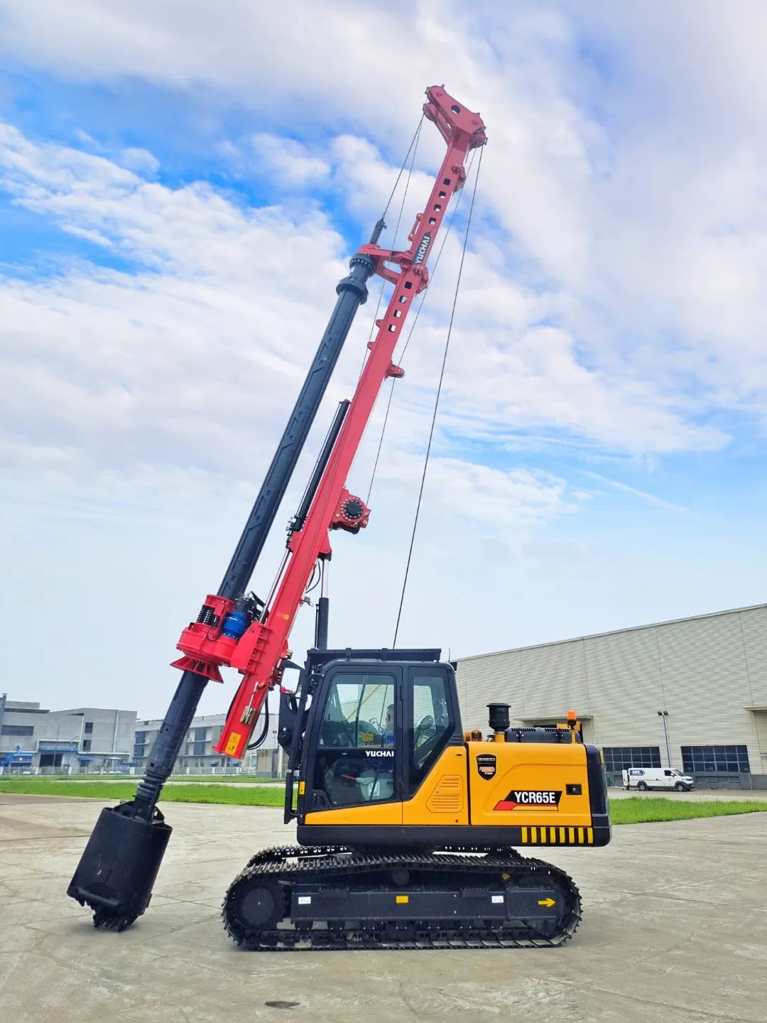 全新升级的玉柴YCR65E旋挖钻机,保留了高效、安全、省油的产品优势,并且动力头配备双马达,加大排量,动力头转速更高,施工更高效。搭载玉柴全新一代发动机,EGR+DOC+DPF控制方式,无需添加尿素,环保经济,动力强劲,高效省油。全新设计的驾驶室,空间大,布局合理,结构牢固;空气悬浮座椅减震效果好,长时间工作不疲劳;配置一键启动按钮,方便可靠。桅杆结构融合了低净空设计理念,能够在农村的低矮路段施工,满足客户更加全面的需求。倒桅无需拆卸钻杆即可上板车运输,主机及附件只需一辆车,节省运费,为客户降低运营成本。
