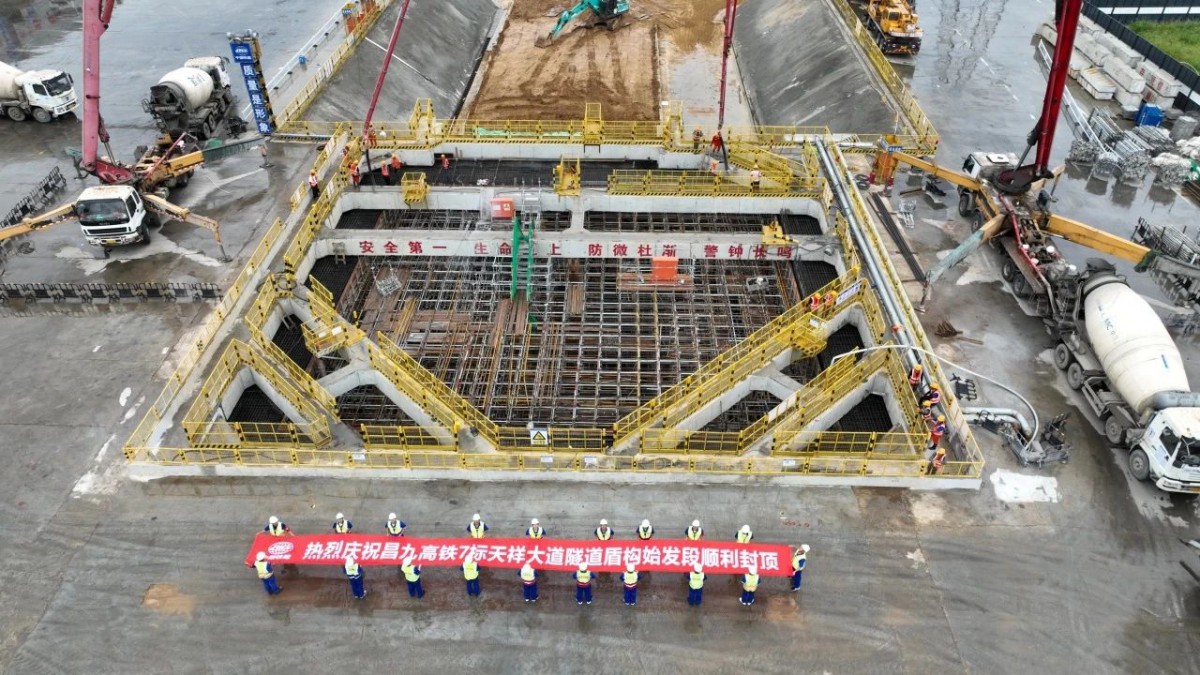 此次封顶的盾构始发段全长150米,采用地连墙+放坡开挖形式,明挖顺做法进行施工。基坑最大开挖深度达28米,为江西省同类型最深基坑。自进场以来,中铁十四局项目建设团队克服临近500kV高压线、连续阴雨天气等诸多不利因素,攻克了在砂石地层地下连续墙易塌孔、开挖过程土体流动性大、放坡开挖吊装难度大等多个高风险施工难点,仅用8个月时间实现顺利封顶。
