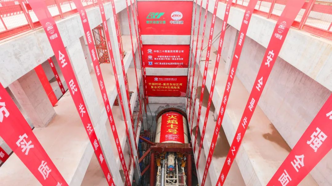 近日,由铁建重工和中铁二十局联合再制造的复合式TBM“火焰七号”在重庆轨道交通24号线一期竹园村站—重庆东站标段顺利始发,开始掘进。