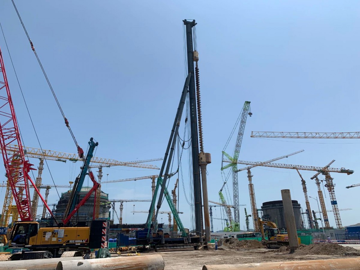 项目施工场地紧靠海边,地下水丰富,受季风气候影响,海水涨潮退潮频繁,严重影响桩基成孔的稳定性。由于核电项目规模大、工期紧,多单位、多工种交叉作业,给桩基施工更是带来很大压力和挑战。针对这些不利因素,京久基础项目部科学组织、统筹部署、反复研讨、优化方案、精准施策,确定采用大直径潜孔锤成孔工艺施工,桩径ф800--1000,钻孔深度25--40米,一次性成孔。