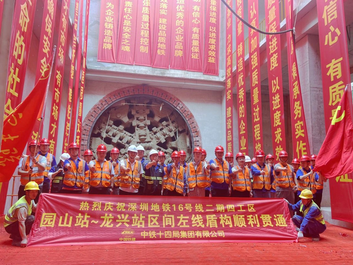 10月10日上午,在中铁十四局深圳地铁16号线二期龙兴站施工现场,盾构机“兴安一号”刀盘缓缓破壁而出,标志着该线路园山站~龙兴站盾构区间左线顺利贯通。