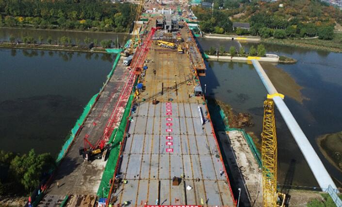 山西省首座双层跨汾河大桥临汾市跨汾河大桥合龙