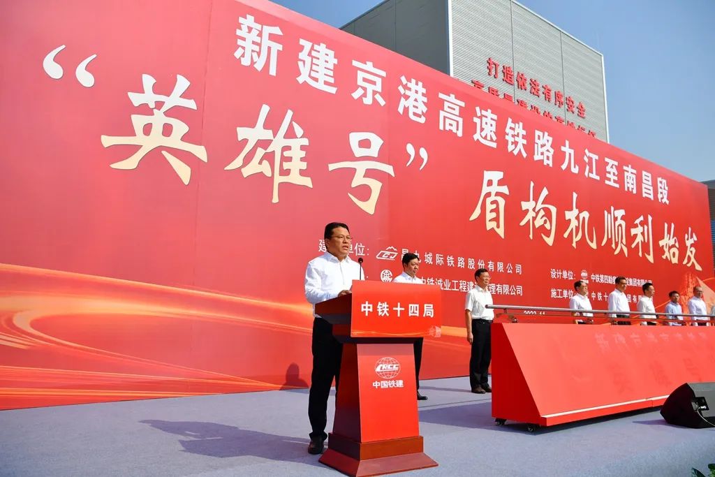周长进代表施工单位发言,将始终勇往直前、攻艰克险,始终勇于创新、精益求精,综合开展 BIM、智慧工地、盾构大数据可视化、监测预警等技术创新,确保盾构设备安全、快速、优质、高效施工,努力打造中国高铁大直径盾构隧道标杆工程,续写红土圣地新的时代荣光,为全面建设“六个江西”倾注央企力量、彰显央企担当。