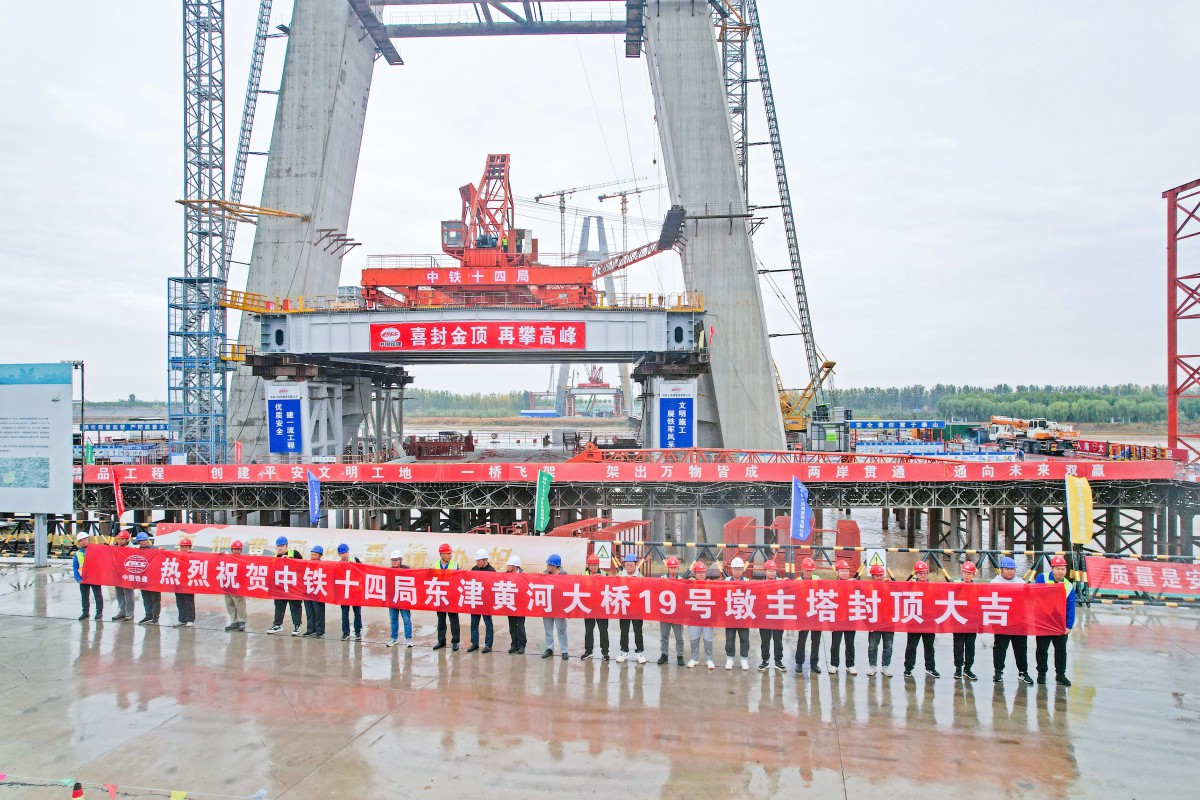 11月6日,由中铁十四局参建的东津黄河大桥主塔全部封顶,大桥将全面进入钢梁架设和斜拉索安装阶段。这也是中铁十四局在黄河之上建设的第9座跨河大桥。