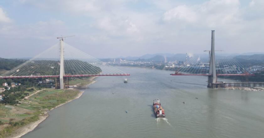 如今,大桥主塔全部封顶,上部结构钢梁施工稳步推进,预计2024年通车。
