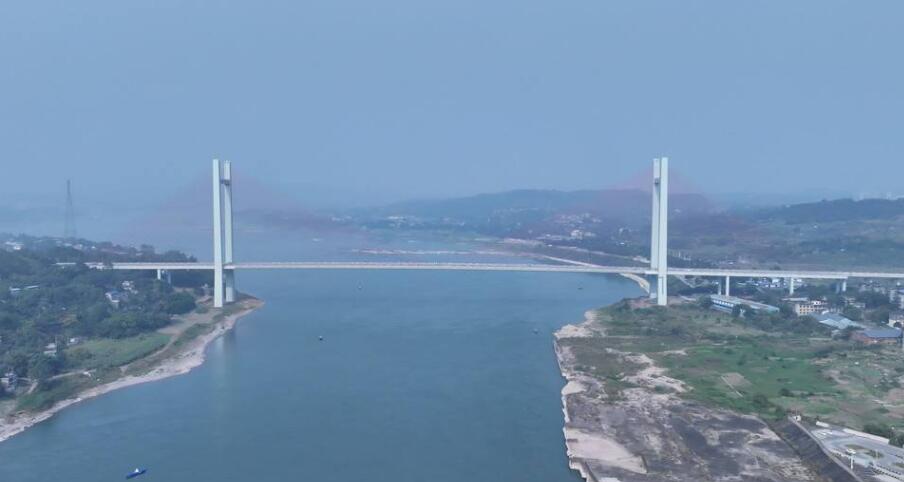 主桥为双塔双索面混合式结合梁斜拉桥,双向4车道,设计时速60公里。记者看到,大桥两侧还设置了两条人行通道,方便两岸居民步行过桥。