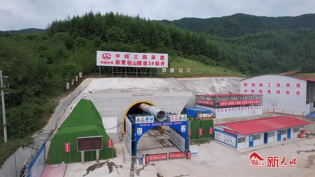 天陇铁路新麦积山隧道全长19818米,其进口位于麦积区甘泉镇胡家沟北侧一缓坡上,出口位于秦州区娘娘坝镇李子村北侧一缓坡上,为单洞单线隧道,最大埋深约747米,最浅埋深约12米。隧道工程分别由三个分部负责施工,其中正洞总长10466.86米的施工任务,占新麦积山隧道全长的52.82%。此次掘进突破2000米的3号斜井长度为2605米、4号斜井长度为2568米。