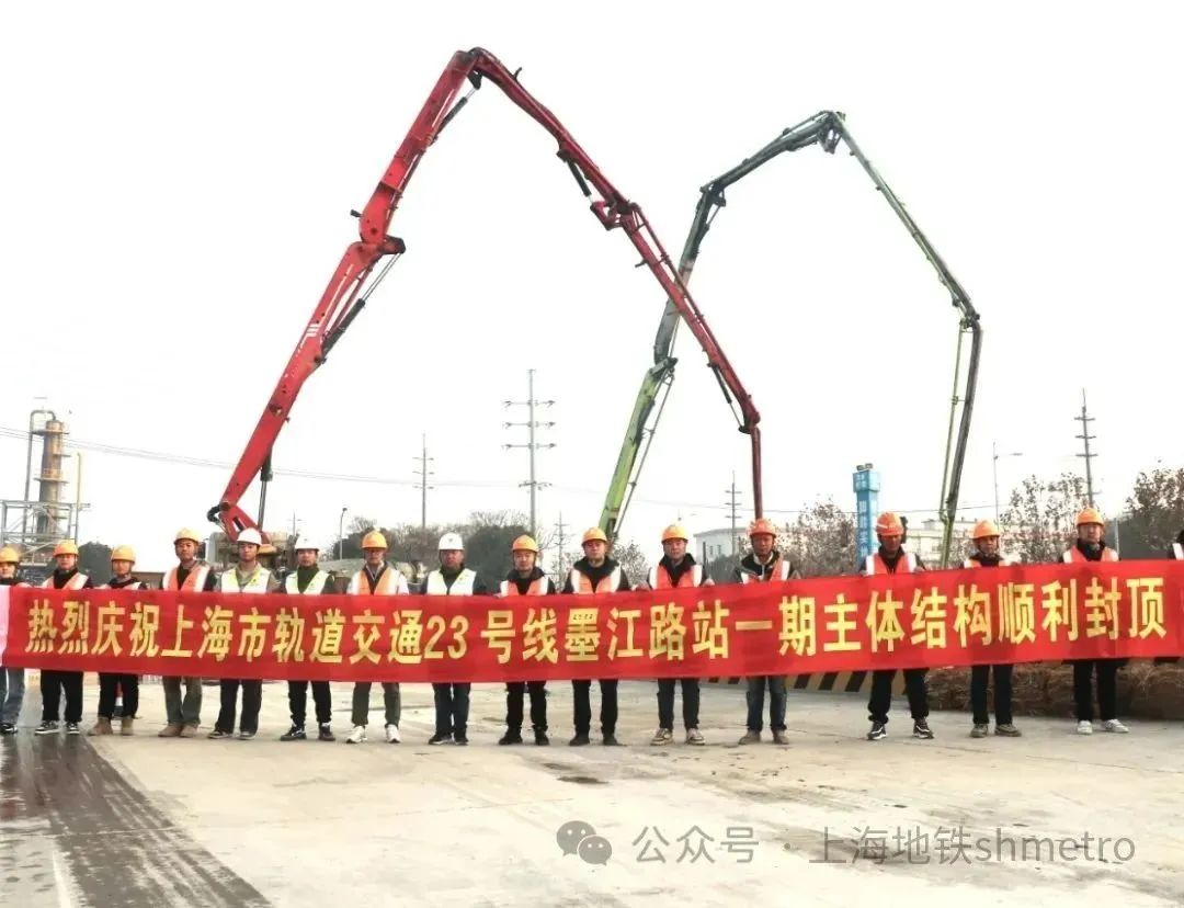 近日,随着上海轨道交通23号线墨江路站一期工程最后一块顶板浇筑完毕,墨江路站一期主体结构顺利封顶完工。