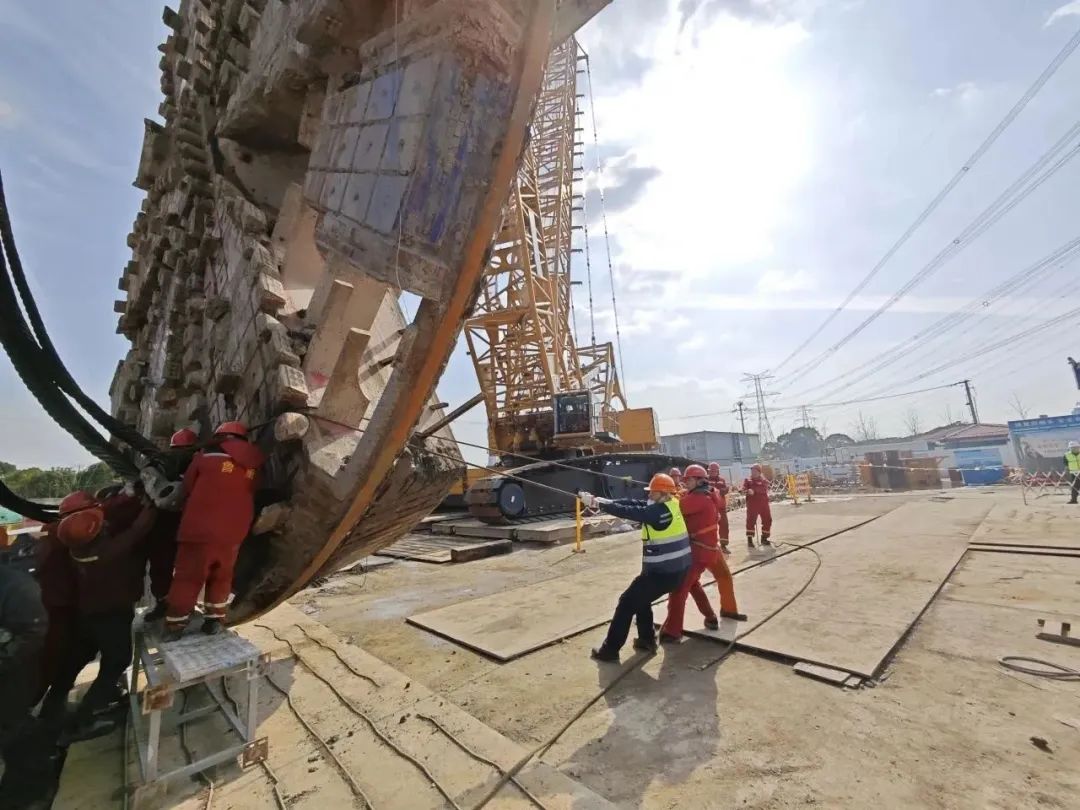 7标4#风井至5#风井盾构区间于2023年12月13日顺利贯通,此后在两台650吨和1000吨履带式起重机的阵阵轰鸣声中,50多名专业拆机人员日夜奋战,克服了施工场地狭小和40年难遇的低温天气,仅用时25天完成了“建业号”盾构机井下拆解、吊装、刀盘切割、运输等一系列工作量。
