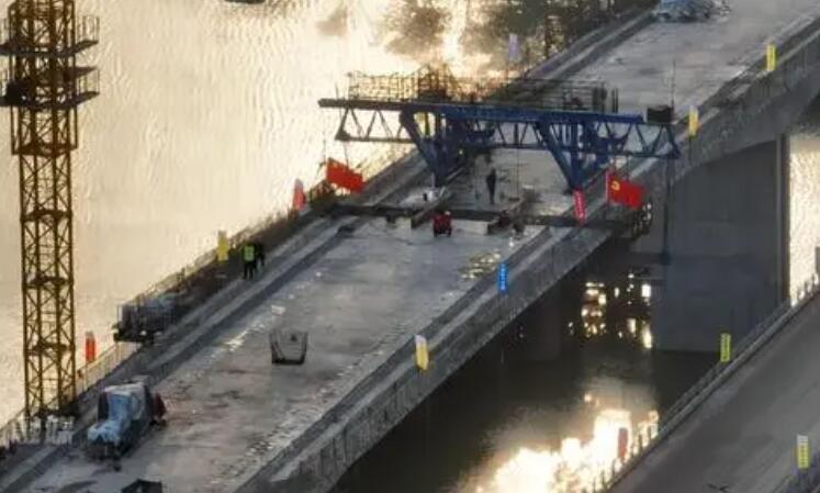该项目引桥部分采用先制梁后架设的施工方式。目前,西侧引桥桥墩已完成,正在架设预制梁,而东侧引桥计划春节后开始施工。有望今年下半年建成通车。