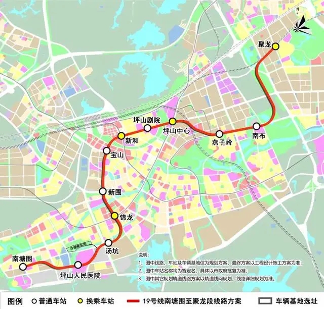 据悉,根据此前公示的《深圳市城市轨道交通19号线交通详细规划(南塘围至聚龙段)》(草案),轨道交通19号线是深圳市东部的普速线路,主要承担龙岗坪山组团内部交通联系功能。线路起于四联,由碧岭进入坪山,终至沙田北,途经龙岗、坪山2个行政区,联系横岗、碧岭、坪山中心区、聚龙、坪山高新区、坑梓等片区,并与轨道网络多条线路衔接换乘。