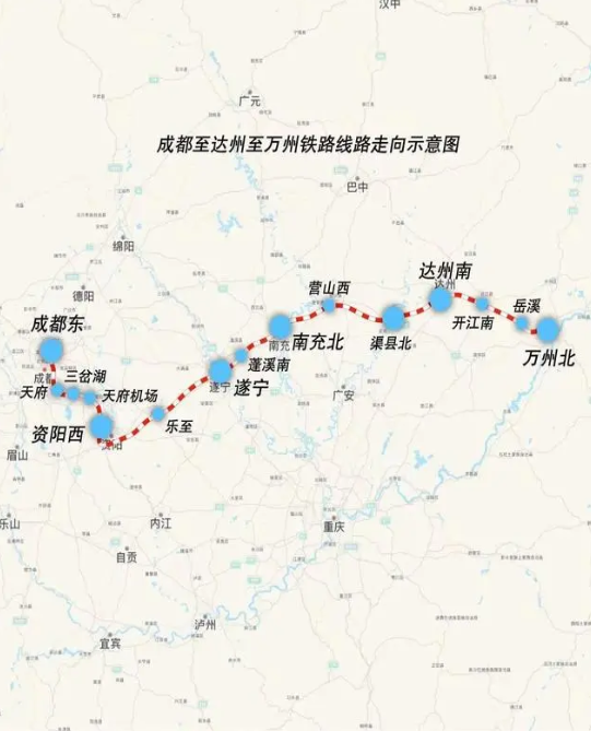 成达万高铁是我国“八纵八横”高铁网沿江通道的重要组成部分,从成都引出,经遂宁、南充、达州至重庆万州,全长400余公里,设计时速350公里。今年,南充段计划完成投资28.86亿元,各项工程正稳步推进。