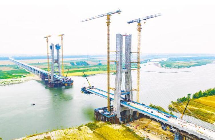 5月9日,随着沪渝蓉高铁钟祥汉江特大桥316号主塔顺利封顶、主桥两岸边跨顺利合龙,大桥建设全面进入中跨合龙冲刺阶段。