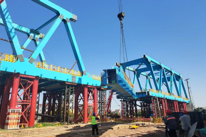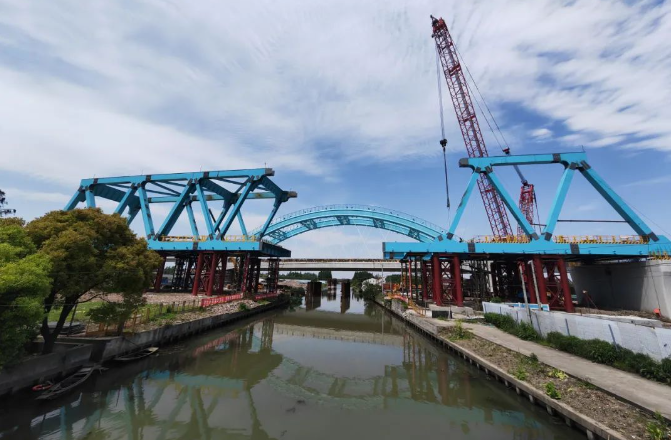自3月12日钢桁梁主体架设施工以来,在上海申铁的统筹部署和提前组织下,项目团队克服了现场场地狭窄、跨越通航河道施工安全风险高等难点,科学编制施工方案,强化现场资源配置,完善安全管控措施,确保架梁施工安全、规范、高效推进。