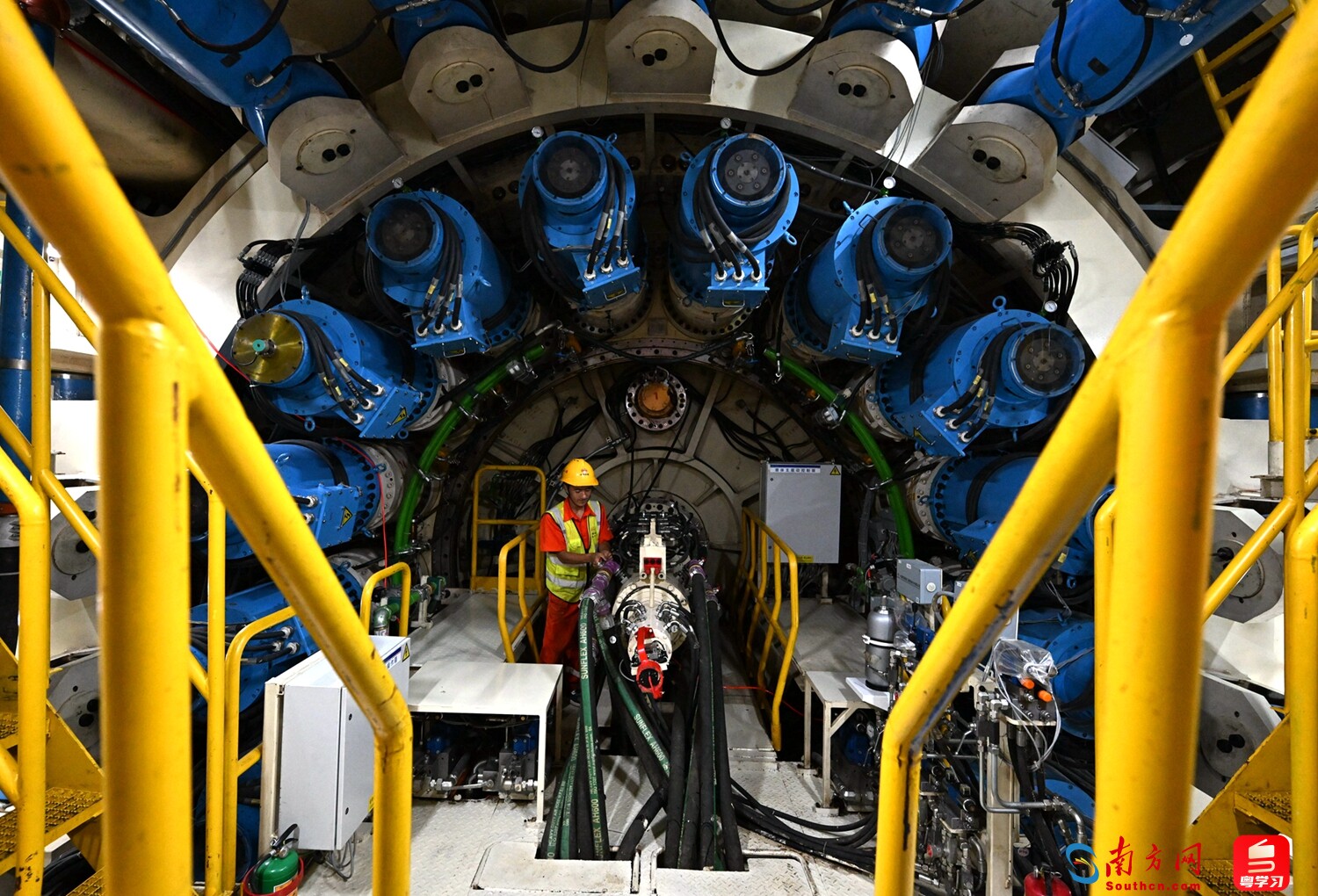 深莞隧道(西段)全长约15.3公里,其中需“鲲鹏号”盾构机掘进的隧道长3.84公里。据介绍,“鲲鹏号”盾构机最大开挖直径为13.24米,整机总长127米,总重量超3350吨,是目前应用于国内复合地层施工中开挖直径最大的土压平衡盾构机。机组自东莞滨海湾7号盾工作井始发后,将沿广深沿江高速方向掘进,在穿越东宝河、外环高速田园互通桥梁等风险源后抵达深圳宝安6号工作井。