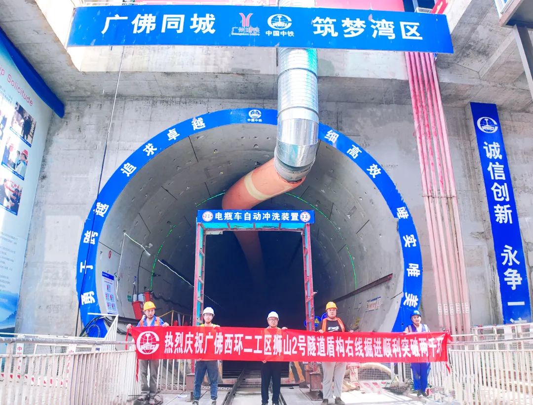 珠三角城际轨道交通广佛西环线起自佛山西站,止于广州北站,由城轨公司负责承建的狮山2号隧道全长5.4公里,是公司目前独头掘进单线距离最长的隧道。区间隧道采用“盾构法+明挖法”施工,其中盾构区间5095米,明挖区间350米,主要穿越强、弱风化泥质粉砂岩、砂岩地层,下、侧穿高压燃气管道、高速公路、高压电塔等,施工环境复杂,安全风险高。