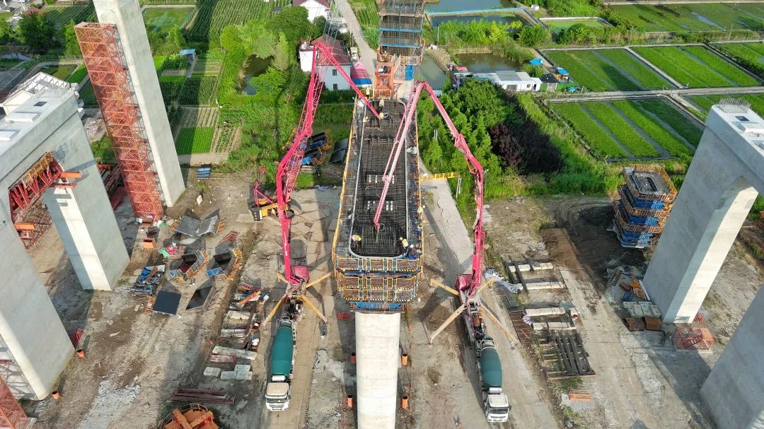 上海至南京至合肥高铁是沪渝蓉高铁的东段线路、国家“八纵八横”高速铁路网沿江高铁通道的重要组成部分,承担沿江通道主要路网客流、沿海及京沪通道部分直通上海客流的运输。崇启公铁长江大桥是全线控制性节点工程,此次大桥北引桥最后一个铁路盖梁浇筑,是项目大干快上的“号角”。后续项目将进一步加大人力、物力和机械设备投入,全面掀起施工大干高潮,全力冲刺年度建设目标。