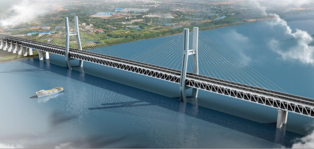 崇启公铁长江大桥是世界最大跨度双塔双索面公铁两用无砟轨道斜拉桥。其构造为双层布置的公铁两用桥,上层为双向6车道、时速100公里的一级公路,下层为时速350公里的双线高速铁路+时速250公里的双线城际铁路。详见↓