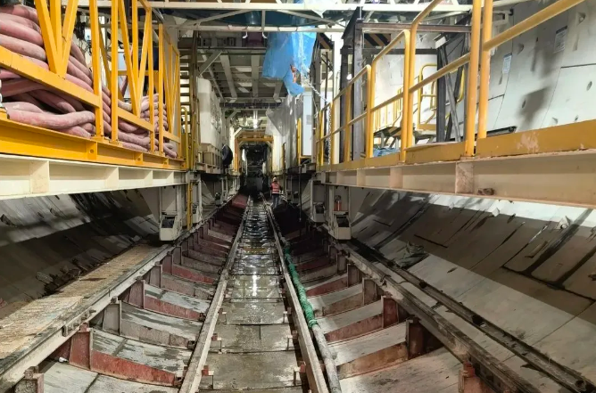 近日,深大城际黄麻布站~石岩中心站区间右线(简称“黄~石区间”)双模盾构机模式转换调试验收顺利通过,标志该盾构机顺利完成分体转整体及**次掘进模式转换。