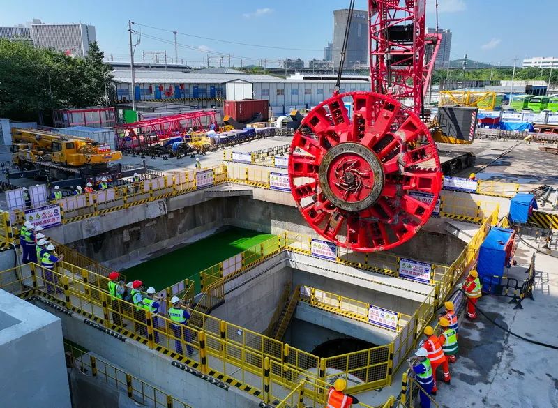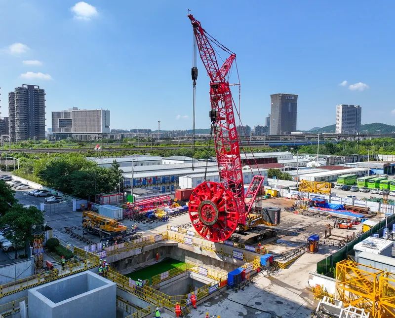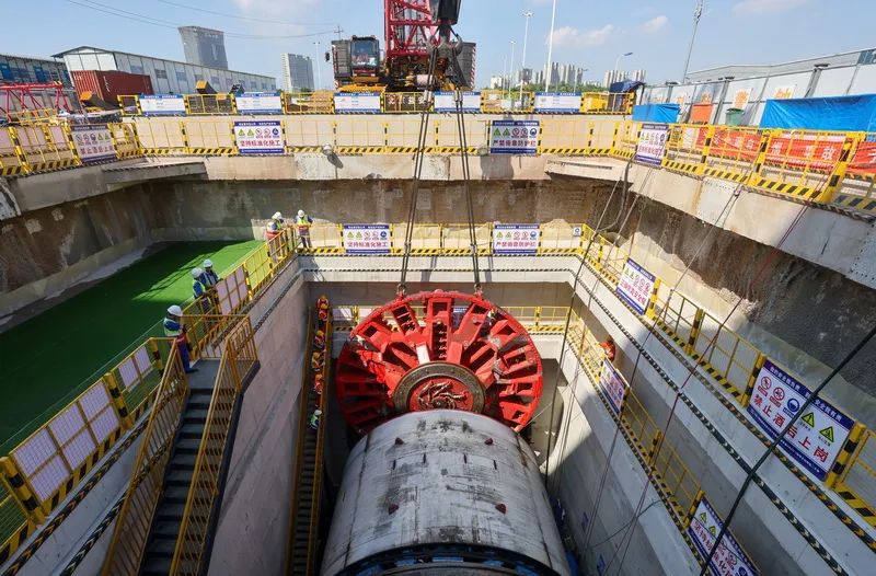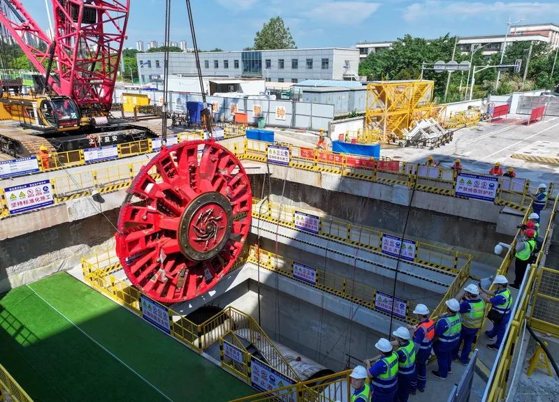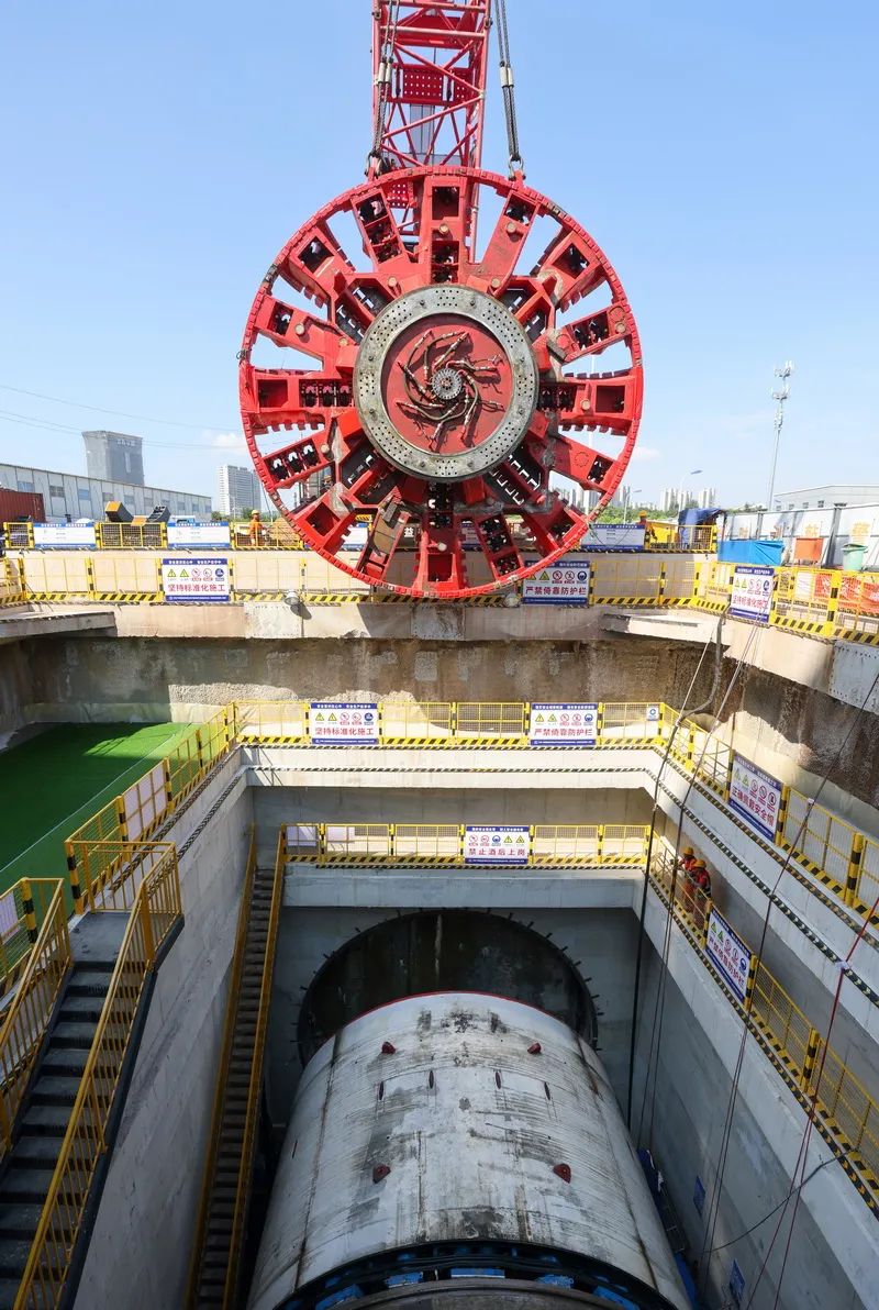 当天上午,重达128吨的盾构机刀盘被履带式起重机从地面吊运至始发井口,缓缓下降,精准落入预定位置。整个过程,施工团队严格按照预定方案,确保每一环节的安全和准确。