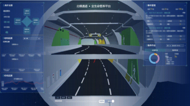 以人工智能替代传统巡检与监管,通过智能物联设备,搭建北横智能化态势感知体系,建立全生命周期管养平台,全面实现线上智慧化管理,同时增强隧道应急抢险能力;布设多种传感器实时监测隧道内空气环境质量,让超长隧道的通行环境更加绿色、安全、环保。