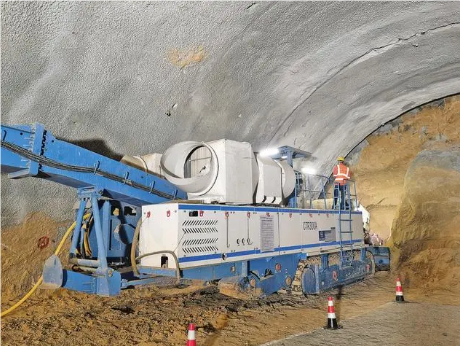 自开工以来,项目团队采用新设备、新技术来解决施工过程中遇到的难题,为隧道早日贯通打下了坚实基础。在隧道施工中采用悬臂掘进机、可伸缩仰拱栈桥、智能化二衬台车等大型机械设备,有效提高隧道施工质量,缩短施工工期。
