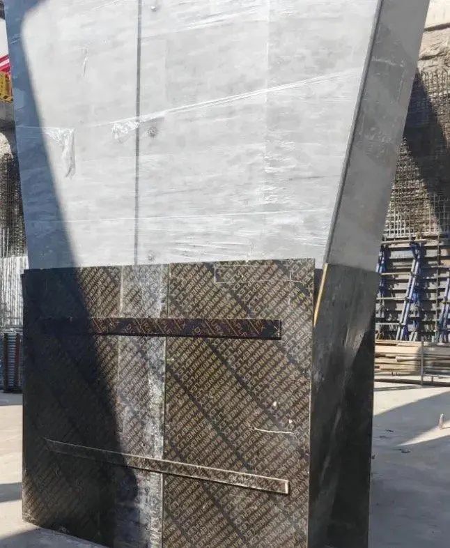 为了提高混凝土外观质量,车站公共区立柱采用清水混凝土施工工艺。两层结构中包含上下共29根清水混凝土柱,其中站厅层15根采用异形柱,站台层14根采用方形柱。建设团队针对混凝土原材料供应、模板拼装、脱模剂选用、混凝土浇筑振捣、预埋管线、混凝土养护等方面进行多次试验,最终确定各项首件制参数指标,确保了清水混凝土柱外观颜色统一、质朴大气。