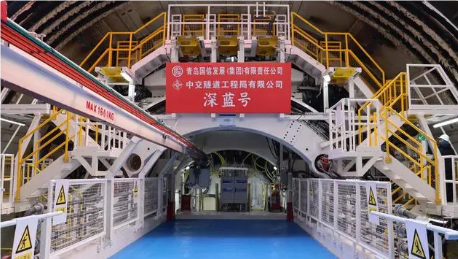 据介绍,目前“深蓝号”盾构机已掘进572米,顺利完成了542米上软下硬地层掘进,并完成“待机”调整,更换了更坚硬锋利的刀具,进入全断面硬岩地层掘进。