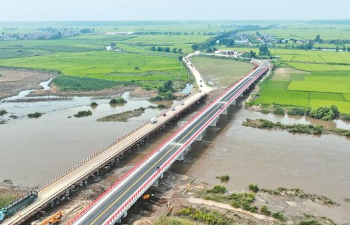 八一和平大桥位于龙凤山—土桥镇公路上,路线编号X303。受2023年8月强降雨导致的洪涝灾害影响,桥梁主河槽内桥跨坍塌,原有道路交通中断。今年3月15日,新的八一和平大桥正式开工建设,新桥全长396米,宽12米,设计结构为13×30米预应力简支梁桥,新桥通过增加桥梁的跨度和高度,有效降低了洪水对桥梁结构的破坏风险,为今后两地百姓生产生活提供保障。