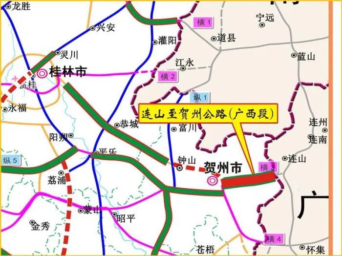 图为连山至贺州高速公路(广西段)路线。
