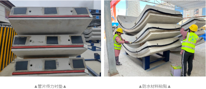 二是重视管片全过程管理,对管片的生产、养护、成品保护、出厂验收、运输、储存等全过程实施监造管理,对验收不合格的管片严禁入场,同时设置专门的管片堆场,将管片放置于量身定制的钢托架上,避免管片损坏;