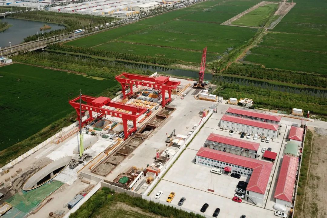 区间采用两台9米级土压平衡盾构机进行施工,双线均由临港开放区站始发,推进至临港综合区站接收。目前,左线盾构机各部件也正在有序进场组装中。