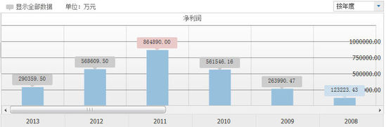 三一重工2008年-2013年净利润浮动情况(根据上市公告财报整理)