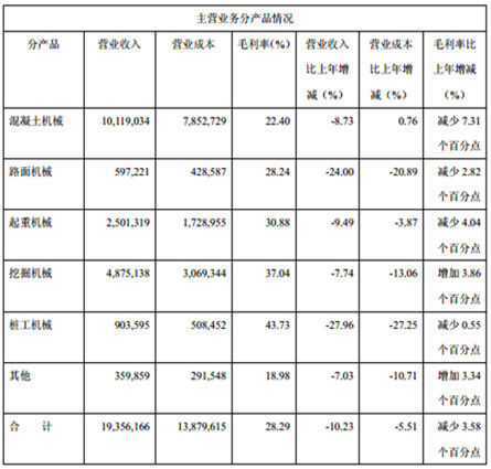 三一重工2014年上半年产品结构及市场表现(摘自三一重工2014年中报)