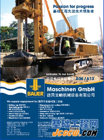 bauma China 2014展览会(即上海宝马展)将于今年11月25日至28日在上海新国际博览中心召开,宝峨公司将展出最新型的旋挖钻机和连续墙液压抓斗,宝峨公司展台号为:室外A06/A13。欢迎您能抽出宝贵的时间莅临参观。