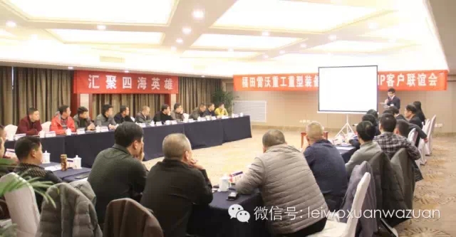 2015年1月,以“汇聚四海英雄 助力中国建设”为主题的福田雷沃重工雷沃旋挖钻2015年VIP客户联谊会在杭州召开,来自浙江、湖北、重庆、四川、贵州等10余省市地区的行业领袖及VIP客户参加了会议,福田雷沃重工重型装备工厂相关领导出席了会议。