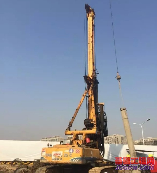 上图为江苏通州基础工程公司的宝峨BG 25钻机在南京龙江湾滨江项目施工,钻孔灌注桩深度25米,直径800mm, 地层为淤泥夹流塑层,全部采用全护筒施工工法。