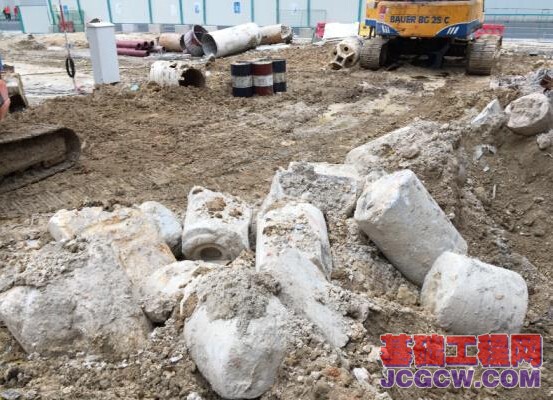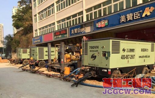 在镇海路车站施工中,用户尝试了BG 26配置集束潜孔锤及4台空压机的钻进方法(见上图)。该项目的施工单位还采取了单体潜孔锤配备4台空压机的钻进方法,利用42吨米级别的旋挖钻机进行钻进。
