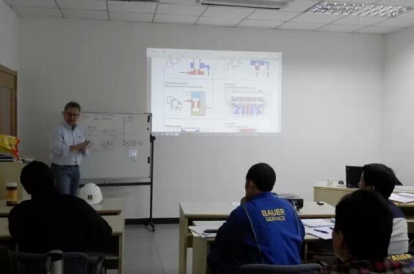 此次全员培训使用宝峨培训中心统一编纂的技术资料,由宝峨中国培训中心资深讲师进行详细讲解。使参训员工系统学习了宝峨钻机的工作原理及其先进的设计理念,全面掌握阅读宝峨设备的电气,液压原理图的技巧,开阔了眼界,了解了宝峨公司设计制造的具有国际领先地位的旋挖钻机产品及相关的现场施工工艺工法的演示。