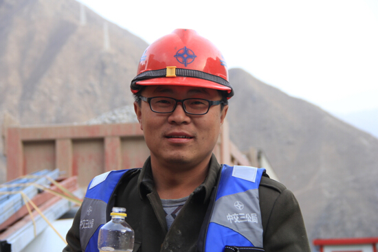 核心提示: 中交三公局循隆高速公路二分部的王洪云一身军绿色外衣、黝黑的皮肤、黑框眼镜显露着时尚,同鲜红色的安全帽相呼应,肩膀上背