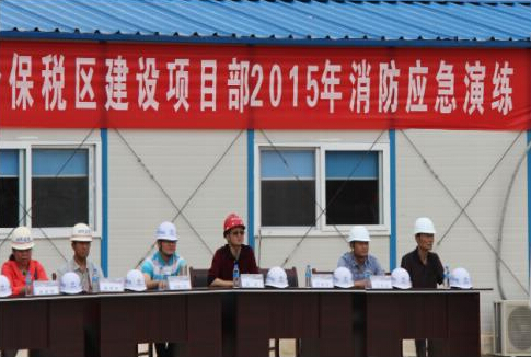 河南鲁山养老院特别重大火灾事故消息发布后,中交一公局综合保税区项目部问警而动,未雨绸缪,第一时间组织全体员工传达习近平总书记重要指示和李克强总理重要批示。为进一步提高项目部全体员工的消防安全意识和突发处置能力,在检查排查的基础上,于6月9日上午举行了一次具有实战效果的“2015年项目部消防应急演练”。
