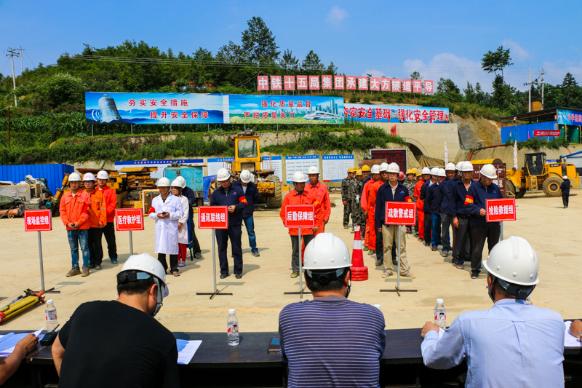 此次演练是模拟大方隧道平导工区1#横通道内突然发生坍塌堵隔灾害事故,项目部立即启动应急抢险救援预案,通过在现场钻设生命通道、采用小导洞法对被困人员进行积极营救。