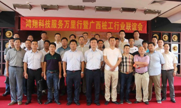 6月18日,鸿翔科技“自始至终,鸿翔钻杆”服务万里行活动首战在南宁正式启动,同时召开了广西桩工行业联谊会。鸿翔科技董事长袁鸿、副总经理张军、华南大区总经理张熙,国土资源部勘探技术研究所主任于好善,《基础工程》杂志社社长孙金山及产品用户、主机厂等50余人出席了此次会议。